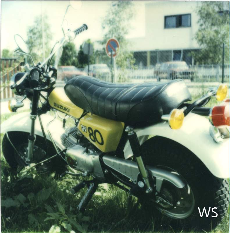 Dies ist die Suzuki RV90, die wir zum Kleinkraftrad umgebaut hatten. Ich habe sie immer noch, wobei sie wieder zurückgebaut wurde als RV90.