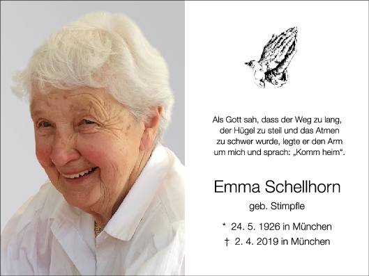 Emma Schellhorn, geb. Stimpfle – 27.5.1926 – 2.4.2019