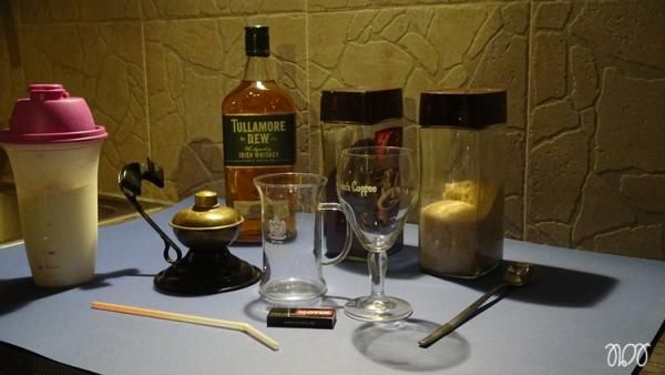 | I | Irish Whiskey (smooth), brown sugar, sweet whipped cream, strong coffee | Irischen Whiskey (mild), braunen Zucker, Schlagsahne und starken Kaffee | |